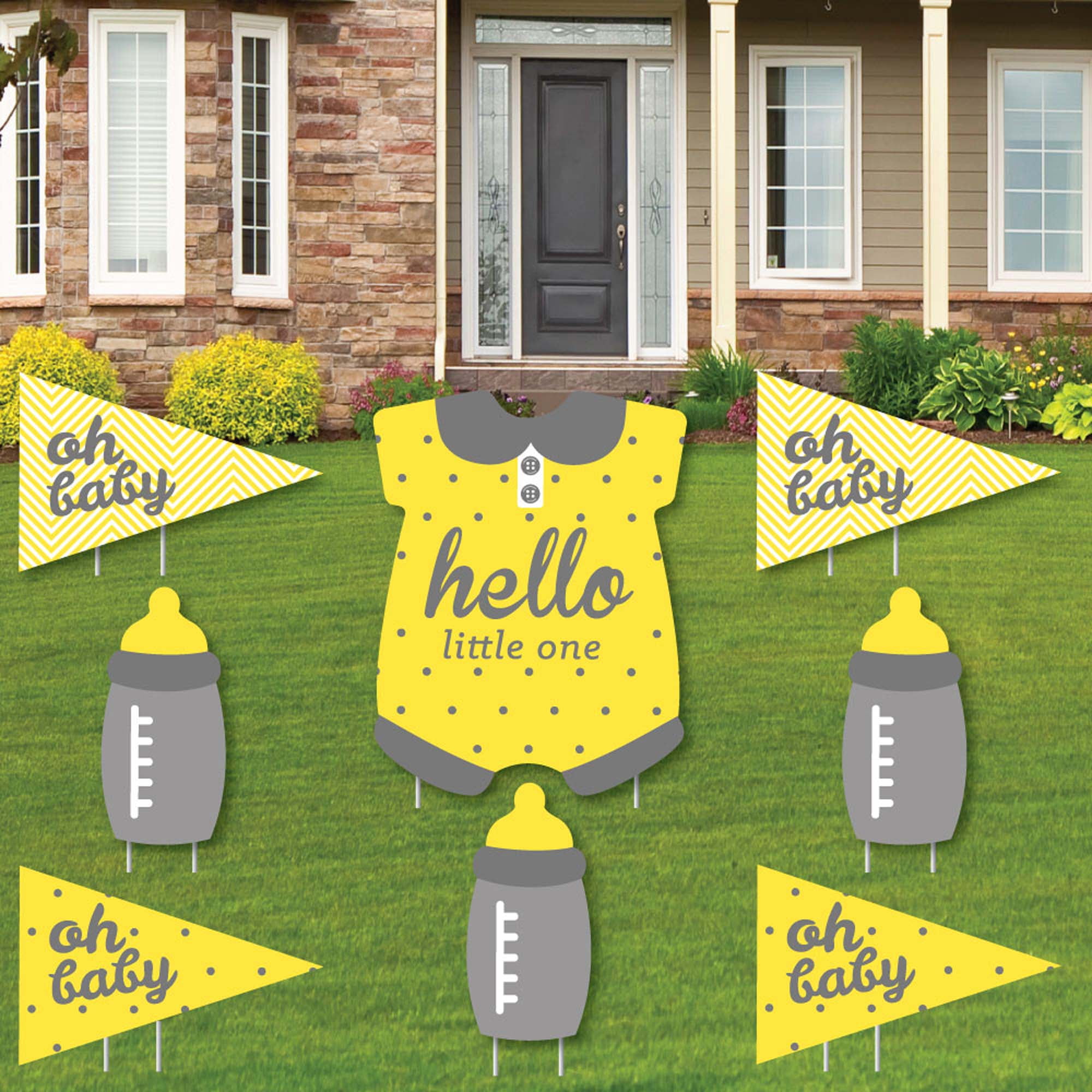 Big Dot Of Happiness Hello Little One Yellow And Gray Yard Sign And Outdoor Lawn Decorations Neutral Baby Shower Yard Signs Set Of 8 Walmart Com